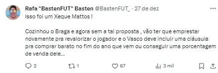 É verdade que a queda de produção do jogador pode preocupar um pouco a torcida, que muitos acharam que o clube não deveria continuar com o jogador, mas por ser um pedido do treinador, pode agregar muito na temporada de 2024.