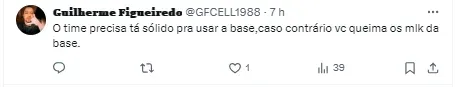 Todo processo é importante e o tempo certo para a estreia também, mas a pouca utilização dos meninos fez o treinador colocá-los de lado e passaram a treinar separadamente, segundo o GE. Se em muitas oportunidades a base já foi solução, isso deveria ser levado em conta. Mas primeiro, o time precisa se estruturar. Resta saber em como a equipe chegará para o Brasileirão.