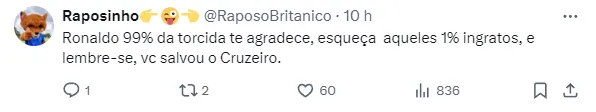 É claro que não pode generalizar. Porém, desde a final do Campeonato Mineiro, a qual o Cruzeiro saiu derrotado, as críticas aumentaram para o lado de Ronaldo e sua equipe.