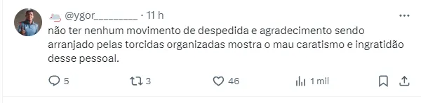 Alguns, inclusive, pediam para que o ex-atacante deixasse a equipe, o que acabou acontecendo. É fato que na questão do futebol, o desempenho recente vinha deixando a desejar.