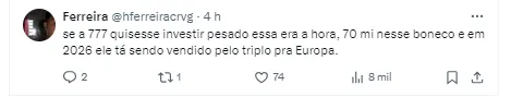 Muitas vezes, as equipes precisam se arriscar no mercado da bola. O jogador é jovem e pelo valor, talvez, seria melhor procurar outro mais pronto, mas pelo que já foi apresentado pelo jogador, sendo destaque em suas equipes, valeria muito o investimento.