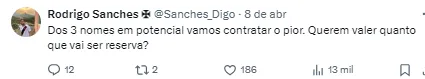 A torcida tem cobrado nas redes sociais por contratações que vão fazer realmente a diferença, mas até aqui, o Vasco não tem aproveitado as oportunidades. Vale lembrar que o clube estreia no Brasileirão no próximo dia 14 e até agora o tão sonhado desejo pedido há um bom tempo por Ramón Díaz não foi cumprido.