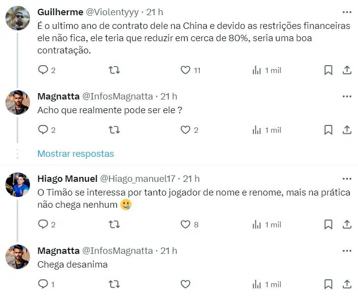 O nome do brasileiro ganha força dentro do Corinthians em meio as informações do setorista Magnatta, que revelou que existe conversas nos bastidores que o meia que está na mira do Timão é Oscar.