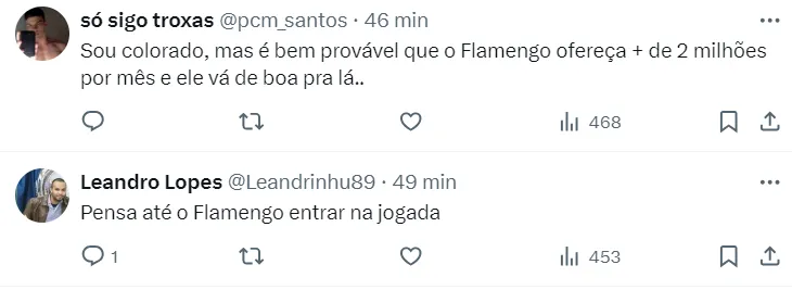 O Flamengo, em 2022, chegou a ficar perto do atleta, que foi flagrado com as cores do time carioca. Um acordo melou após o clube chinês não liberar o documento final.
