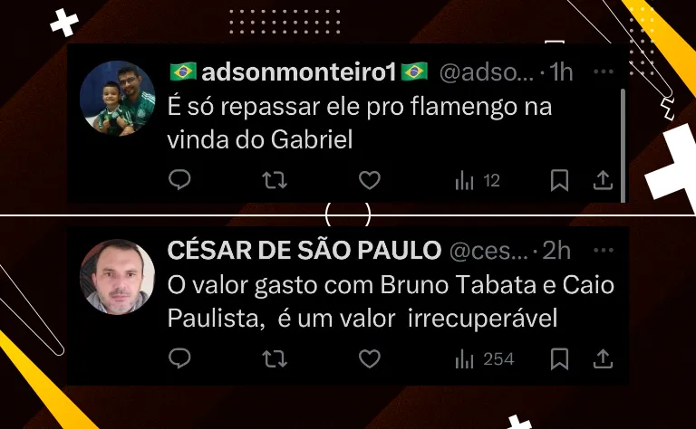 Um dos jogadores cujo futuro está em aberto é Bruno Tabata, que retorna ao Palmeiras após uma temporada emprestado ao Qatar SC. Segundo informações do Nosso Palestra.