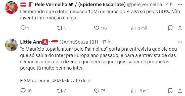 De acordo com informações do portal GOAL, Maurício topa assinar com o Palmeiras, mas não irá forçar uma saída do clube de Porto Alegre, pois seus agentes entendem que esse movimento seria ruim para a sua carreira.