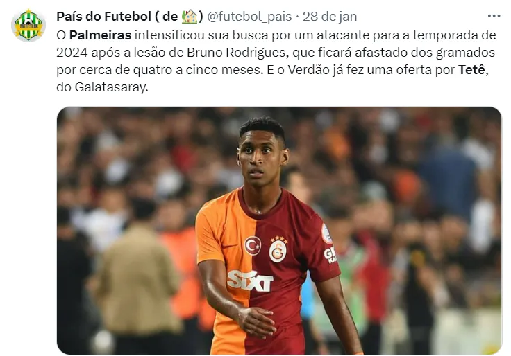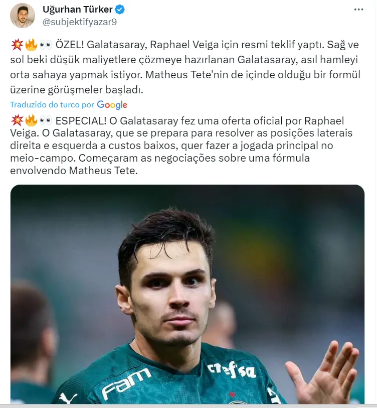 Diante dos rumores vindo da imprensa de fora, é quase zero a chance de uma troca entre Palmeiras e Gatasaray envolvendo o nome de Veiga, como informa Nicola, que entrou em contato com o empresário do jogador, André Cury. O Verdão, de fato, se interessa por Tetê, mas por estes moldes, quase impossível.