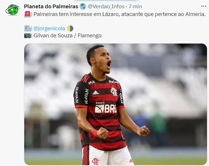 Ciente de que precisa de mais reforços para uma longa temporada do futebol brasileiro, o Palmeiras, segundo Nicola, tem conversas avançadas para anunciar a contratação do meia-atacante Lázaro, ex-Flamengo e atulmente na Espanha.