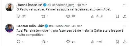 E é justamente o final da temporada que vem chamando a atenção e outro assunto que repercutiu nas redes sociais: uma possível saída de Abel Ferreira do Palmeiras.