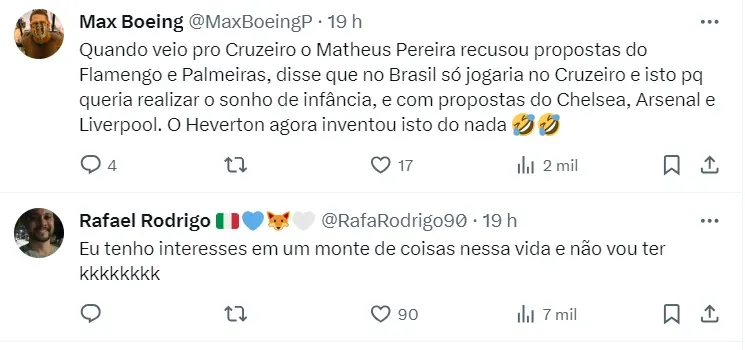 O Cruzeiro deverá buscar recursos financeiros para adquirir o futebol de Matheus para os próximos anos. Como o atleta está fora dos planos do Al Hilal, a Raposa pode ter vida fácil pela frente.