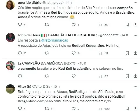 “A bola ainda está com o Botafogo. Mas os outros times começam a ganhar e o Botafogo começa a perder. Minha aposta é que o Bragantino seja o time a desbancar o Botafogo,” completou Trajano.