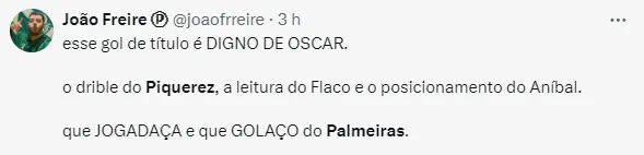 Abel Ferreira, inclusive, já estaria estudando uma possível reposição para caso uma venda de fato aconteça. Mas, até lá, Piquerez seguirá jogando com as cores do tricampeão do Paulistão.