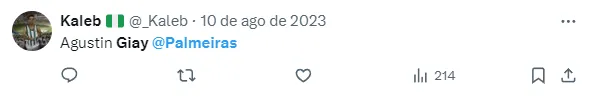 Segundo o portal, o Verdão está na disputa com clubes como Benfica e Inter de Milão pela contratação de Agustín Giay, considerado uma das maiores promessas do futebol argentino.