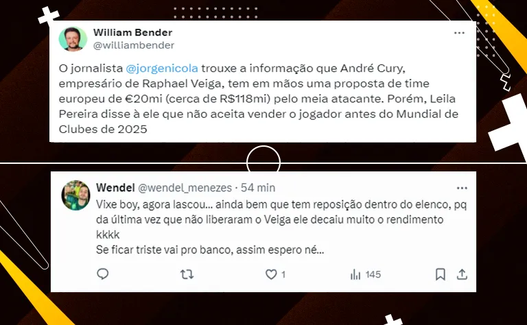 Na atual cotação da moeda, os valores se aproximam da casa de R$ 118 milhões. Entretanto, Leila Pereira teria comunicado ao agente que não quer vender Raphael Veiga antes do Mundial de 2025.