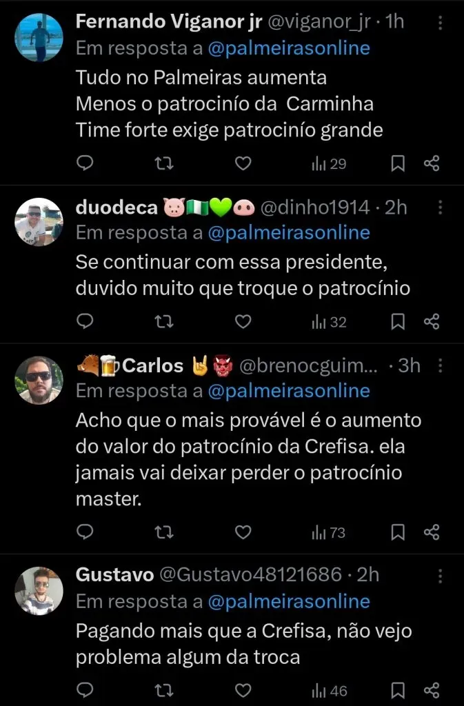 O contrato do Palmeiras com a Crefisa e FAM é válido até o final do ano, quando também encerra o mandato da presidente Leila Pereira no clube e haverá novas eleições no clube.