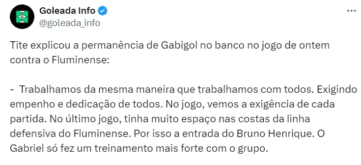 O Flamengo está classificado para a final do Carioca após passar do Fluminense. Gabigol não fez nenhum gol diante do rival e no segundo jogo sequer saiu do banco de reservas – já que vinha de lesão.