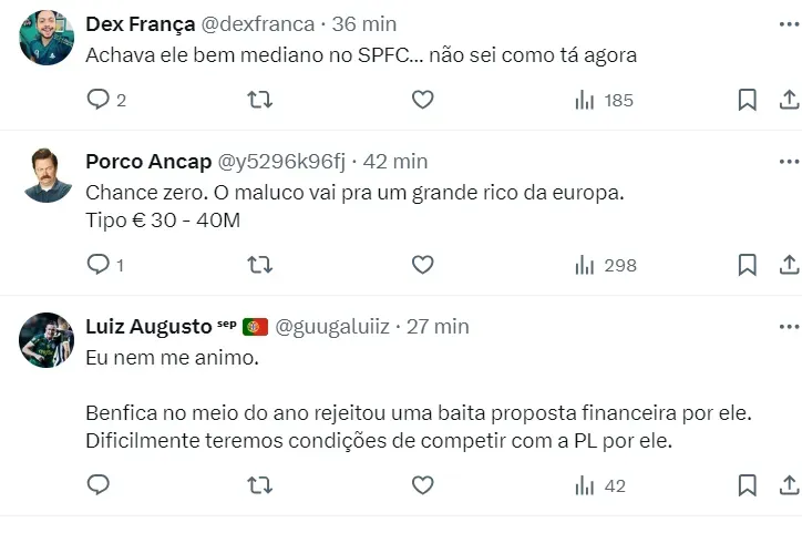 O clube paulista analisa a contratação do zagueiro como uma oportunidade de mercado, em meio à informação de que o Benfica pretende negociá-lo na janela de verão do futebol europeu. Quem conta isso é Diego Firmino, do Canal P de Porco.