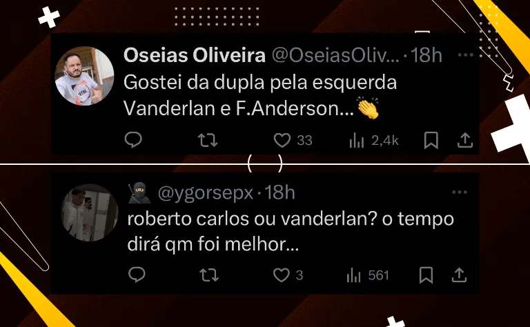 Na partida de ontem, Vanderlan foi o escolhido pelo treinador para iniciar o jogo e se destacou, sendo eleito o melhor jogador da partida, o que trouxe tranquilidade à torcida palmeirense.