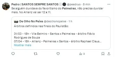 “Eu não tenho dúvidas que o Palmeiras vai brigar por muitos títulos, mas fica esperto. Se jogar a bola que jogou contra o Novorizontino o Santos do Carille vai ser campeão paulista. Pra mim, o Santos vai ser campeão paulista. Eu não tenho dúvidas”, cravou Neto.