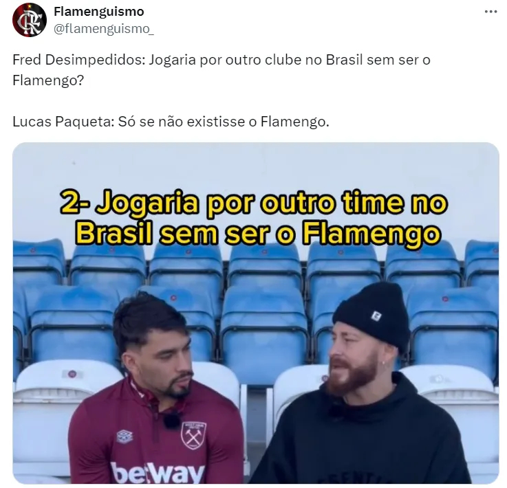 Antes do confronto contra a Inglaterra em Wembley, Paquetá foi entrevistado por Fred, do Canal Desimpedidos, e respondeu sobre a chance de um dia jogar em rival do Flamengo no Brasil.