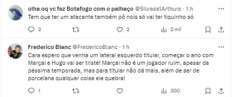 “Temos conversado diariamente, com Mazzuco e Alessandro, sobre as posições que temos que buscar. Vamos tratar internamente porque a gente sabe como funciona o mercado para preservar as pessoas. O Botafogo hoje tem uma rede de monitoramento muito bem estruturada, tem uma base de equipe e creio que a gente precisa ser muito assertivo em posições pontuais pensando em qualificar esse elenco para 2024”