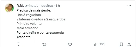 Reforços estão em pauta com certeza, e a diretoria possui pelo menos cinco posições que deseja reforçar para 2024, segundo o GE.