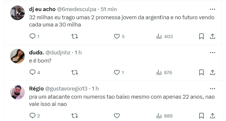 Mesmo assim, o Atlético está interessado no jogador e se coloca à disposição para apostar algo em seu futebol. Na web, no entanto, parte da torcida é contra os valores que foram oferecidos pelo clube.