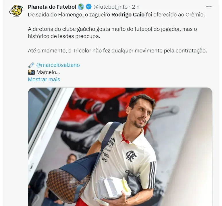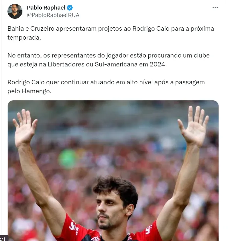De acordo com informações de Pablo Raphael, a equipe do Grupo City apresentou um projeto para contar com Rodrigo Caio em 2024, mas os representantes do defensor recusaram.