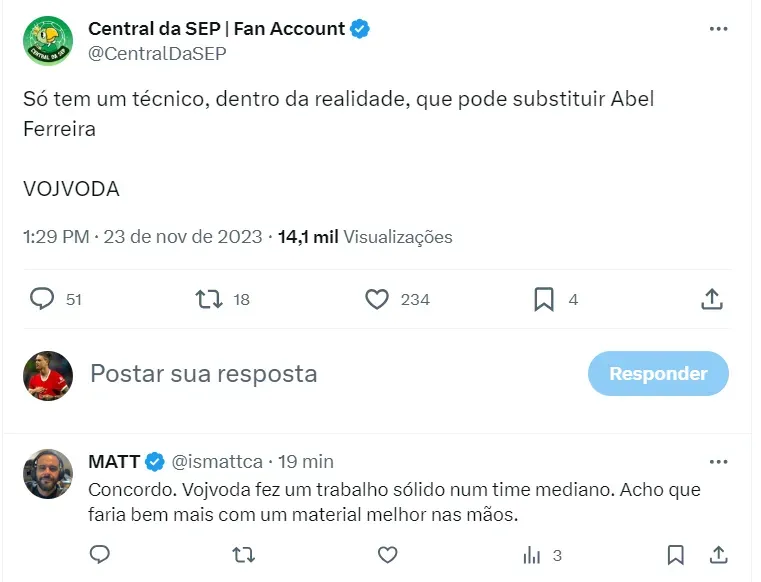 Na web, parte da torcida do Palmeiras já escolheu o nome que seria o substituto perfeito de Abel Ferreira no Palmeiras, mesmo que tudo, neste momento, se resuma em rumores.