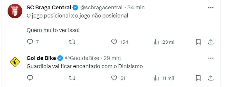 “Queria saber (como é o jogo sem posicional). Talvez ele (Diniz) me conte quando nos encontrarmos. Parabéns ao Fluminense pela Libertadores, um troféu tão importante na América do Sul. Temos a semifinal antes, mas chegaremos preparados e tentaremos ganhar”, disse Pep Guardiola.