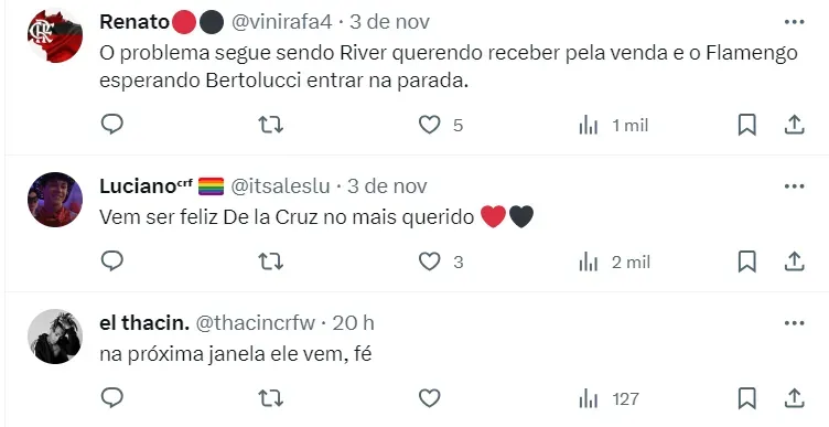 Apalavrado com o Flamengo, De La Cruz tem tudo para jogar no Rio de Janeiro em 2024. O atleta já teria dado seu sinal de ‘ok’ para jogar no Mais Querido em 2024, conforme aponta Nicola.