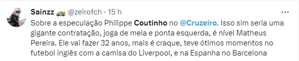 Porém, na última semana, o nome do atleta voltou a ser assunto no Brasil. Isso porque, conforme antecipado por Heverton Guimarães, Philippe é alvo do Cruzeiro para o meio do ano.