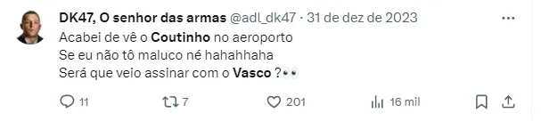 É bem verdade que, no futebol brasileiro, o Vasco surge como principal interessado no meia. Entretanto, Coutinho pode ter outro destino para a sequência da carreira.