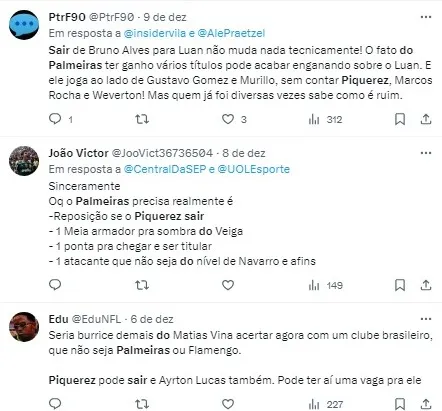 Embora, até o momento, não tenham sido apresentadas propostas concretas, a possibilidade de ofertas futuras mantém os torcedores do Palmeiras apreensivos quanto à permanência de um dos titulares.