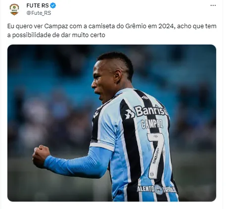 Pelo time argentino, são 38 jogos, oito gols e oito assistências. Campaz foi contratado pelo Grêmio em 2021 e custou 4 milhões de dólares (R$ 21 milhões pela cotação na época) aos cofres do da equipe gaúcha. Na ocasião, o meia-atacante era destaque defendendo as cores do Tolima.