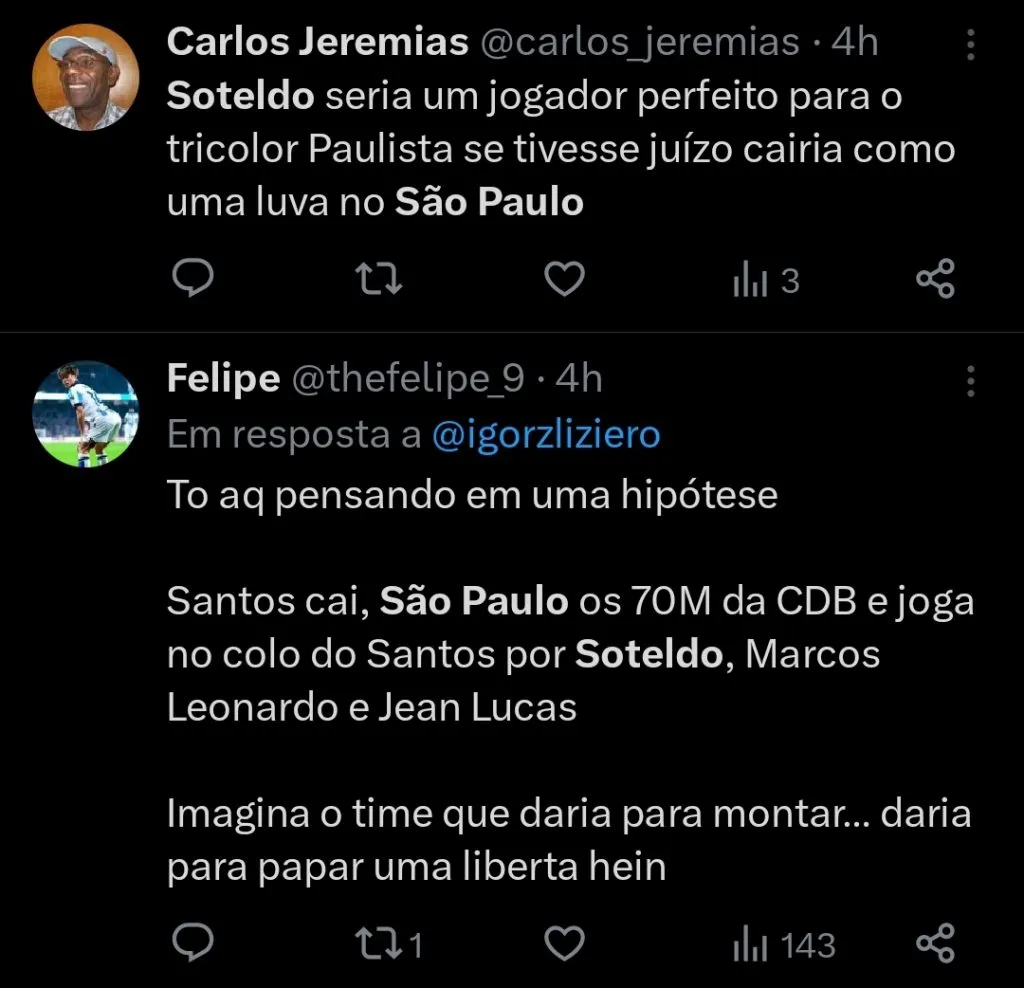 No entanto, o jornalista salienta que o Santos, mesmo que decida liberar o jogador, fará de tudo para evitar uma negociação com o rival.