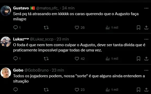 Duílio Monteiro Alves sai, entra Augusto Melo e o problema continua o mesmo no Corinthians: fala de caloteiro. O clube paulista continua com a mesma lacuna a ser resolvida.