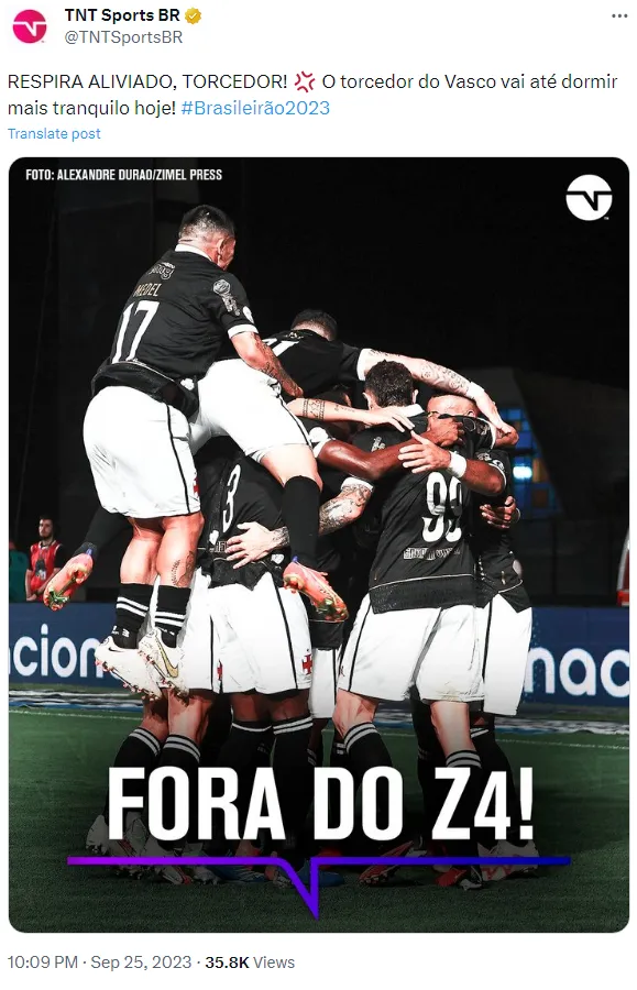 “Fizemos um primeiro tempo perfeito, aí veio a expulsão, que com todo respeito… nem o árbitro deu falta no lance. Pode ter certeza que o Vasco não vai cair, por tudo o que estão fazendo. Eu tenho que ter cuidado nas minhas falas, mas não pode fazer isso, o que o Abatti fez aqui hoje não pode fazer. É muito mais fácil tirar o Vasco (do rebaixamento) do que tirar o América-MG, e é isso que vão fazer. Pode ter certeza que se os caras tiverem que criar algo para tirar o Vasco, vão tirar. Isso é certo, todo mundo conhece o futebol brasileiro. O Vasco não cai, porque vão fazer de tudo para não cair.“