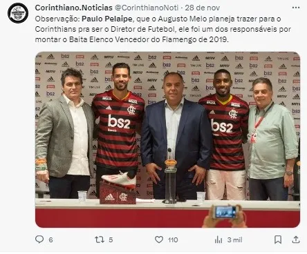 No mesmo contexto, Paulo Pelaipe, cogitado como possível diretor do Corinthians, se manifestou sobre a possibilidade em entrevista à Rádio Zero9. O dirigente, atualmente no Botafogo-SP, expressou sua satisfação e orgulho por ser mencionado para um cargo tão importante.