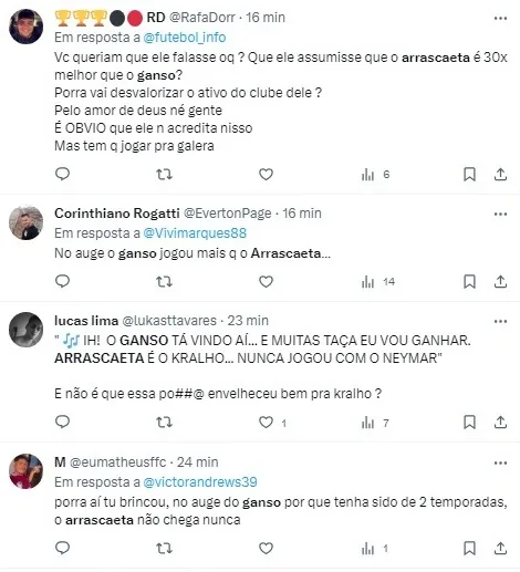 A rivalidade entre Ganso e Arrascaeta parece continuar gerando debates acalorados entre os torcedores das equipes rivais.
