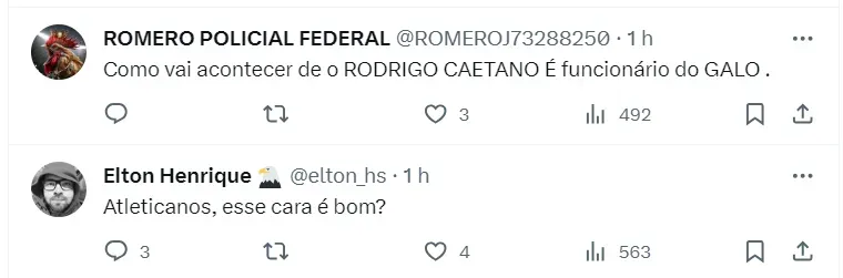 “Haverá sim nos próximos dias uma reunião entre Augusto Melo e Rodrigo Caetano”, conta Heverton, em seu canal do Youtube. A fonte ainda completa dizendo que não há, em 2024, nenhuma multa envolvendo o nome de Caetano com o clube de BH.