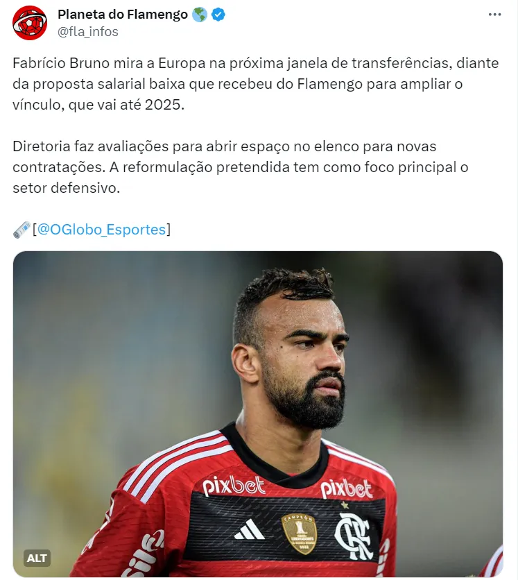 Um dos principais nomes que podem deixar o Flamengo ao final do ano é Fabrício Bruno, considerado o melhor zagueiro do elenco do Flamengo e um dos melhores do futebol brasileiro. O talentoso defensor surpreende ao buscar oportunidades no futebol europeu, devido à proposta salarial reduzida que recebeu do Flamengo para renovar seu contrato.