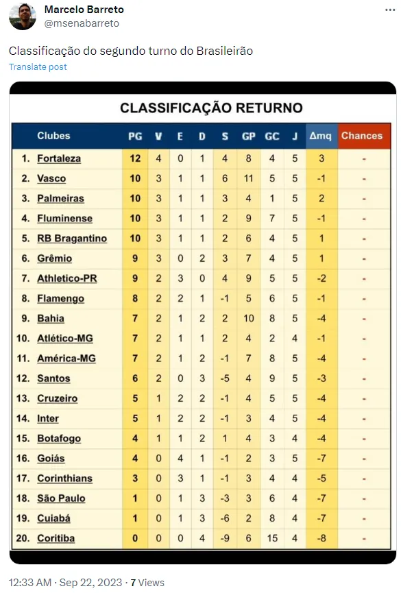 O renomado jornalista PVC, em sua coluna do Uol Esporte, aproveitou a oportunidade para comentar sobre a situação do Vasco no campeonato. Além disso, ele ousou ao “cravar” que um grande clube brasileiro já está rebaixado para a Série B.