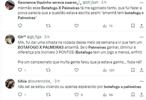 “Esse é o ponto importante para lembrar. Desde a inauguração do Allianz Parque, em 2014, o Palmeiras nunca passou mais de um jogo, em novembro, sem jogar no Allianz Parque. Só Palmeiras x Corinthians, em 2019, foi no Pacaembu. O Palmeiras vai passar três jogos de novembro fora de casa, o que pode ser um ingrediente para perder o campeonato. Se ganhar do Botafogo, se coloca em uma condição de sonhar com o campeonato. Ele vai ter três mandos de campo fora do Allianz.”, disse PVC, no programa De Primeira.