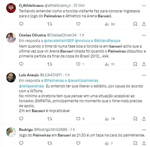 “Acho (que seria melhor no Morumbi). A torcida do Palmeiras não gosta de ir para Barueri. O maior público do Palmeiras como mandante, neste ano, foi contra o Santos no Morumbi.”, completou.