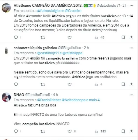 “A tabela mais complicada é do Atlético porque ele está em sexto lugar, embora seja o quinto por pontos ganhos. E o Atlético tem que pegar o Grêmio e o Flamengo, mas o Atlético é o que a gente menos acredita que vai ser campeão”, afirmou PVC durante a análise.