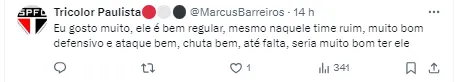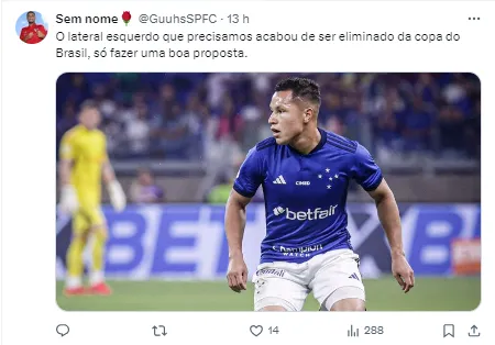 “Falo dele faz tempo, seria uma ótima contratação, cara que já tem experiência, um lateral mais completo, e que seria mais ou menos o valor do Caio Paulista 🤷🏻♂️”
