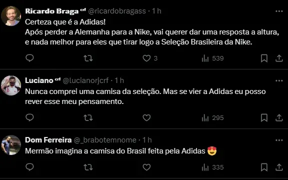 O movimento com outras confederações também impulsiona a Confederação Brasileira pensar na mudança. A Alemanha recentemente anunciou a saída da Adidas.