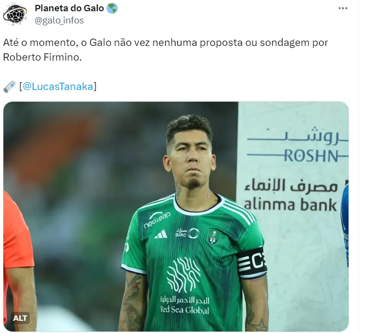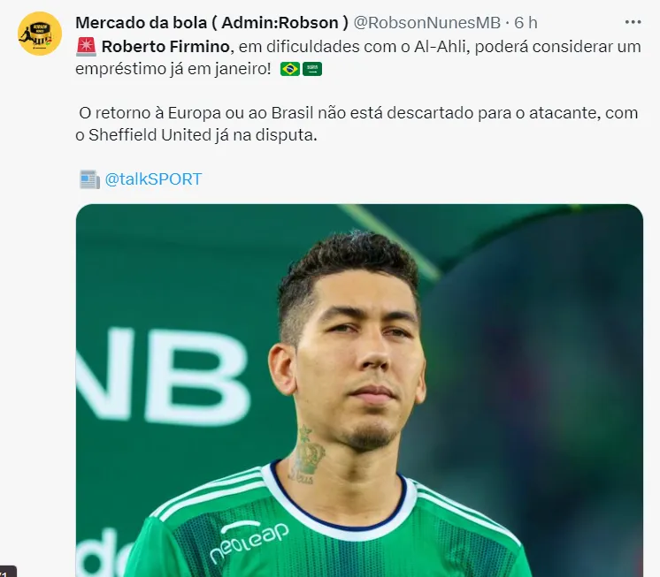 No Brasil, além do Corinthians, há outros clubes de olho na situação de Roberto Firmino no futebol saudita. O Atlético-MG é um deles, mas não entrou em contato.