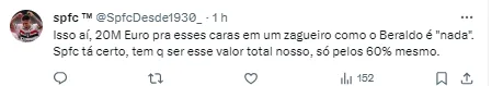 Um deles é o zagueiro Lucas Beraldo. O clube definiu o preço para a venda: a diretoria quer € 20 milhões (R$ 108 milhões na cotação atual) pelo percentual que detém do defensor, segundo informações do portal GOAL.